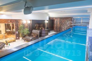 - гостиная-столовая площадью 34.1 м2 с большой крытой террасой 136 м2 и открытой частью с зоной для барбекю, на террасе установлен бассейн с полноценной дорожкой для плаванья,