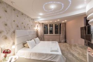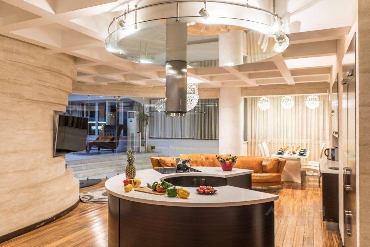 Выполнена дизайнерская отделка в современном стиле с применением ценных пород дерева, мрамора и декоративной штукатурки, установлена итальянская кухня с бытовой техникой BOSH и отдельным островком для приготовления блюд.