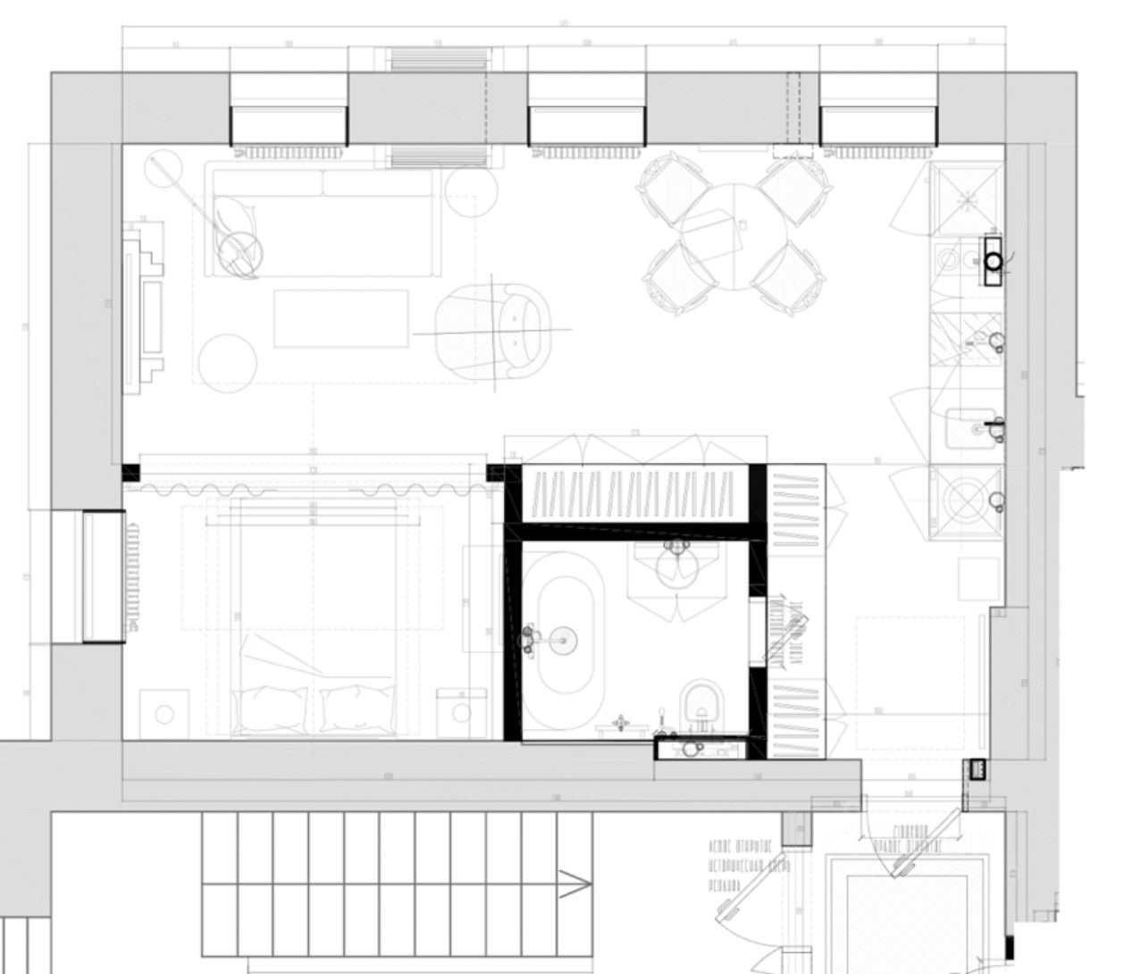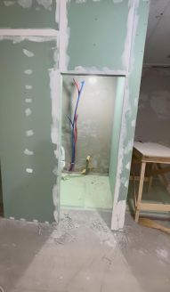 Сделан редевелопмент всего: полный демонтаж и зачистка, пол и перекрытия пересобранны, свежая стяжка, протянута осендорфовская канализация, трубы рехау шитый полиэтилен от стояков. Стены выровнены и оштукатурены, окна новые рехау, разведена времянка, новая входная дверь.
