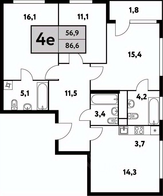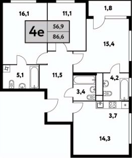 Неповторимый вариант в нашем жилом комплексе! Квартира расположена в подъезде, где всего 5 квартир на площадке. 4-комнатная квартира евроформата, окна которой выходит на восточную и южную сторону, а значит в ней всегда будет тепло и уютно. Под окнами тихий двор, никаких дорог и магистралей. Одно из налучших планировочных решений в проекте - просторная кухня-гостиная 18,1 метра, три спальни и 3 сан. узла. Удобная мастер-спальня с выходом на лоджию и со своей ванной, а также просторный коридор с местом для функционального хранения.