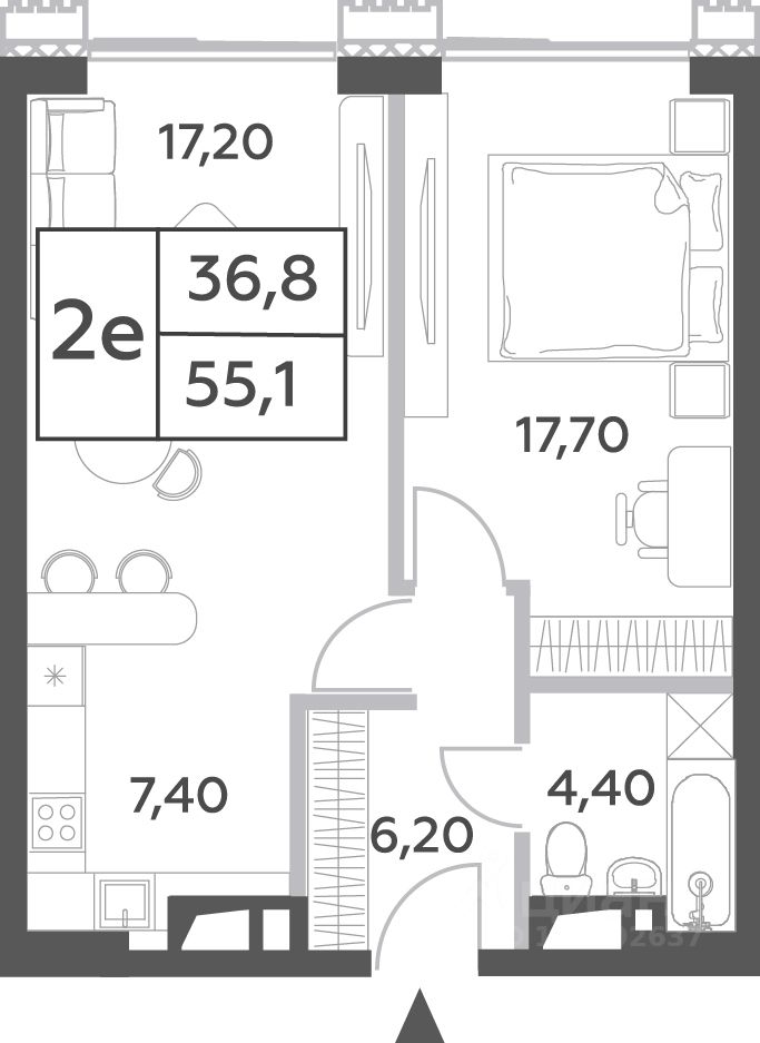 Продается евро 2-комнатная квартира на 7 этаже в строящемся доме (Корпус 1/Башня Creativity).