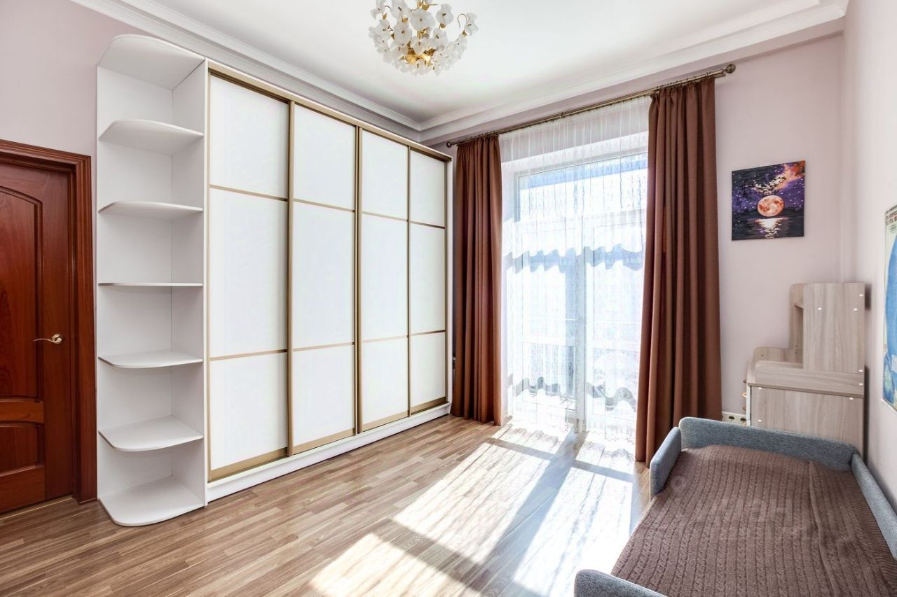 Лучшее предложение в доме! Продаётся видовая трёхкомнатная квартира по Тверской улице 700 м от Кремля. Расположена на 5 этаже 6-ти этажного дома, построенного по проекту архитектора А.Г. Мордвинова и инженера П.А. Красильникова, награжденных за свой проект сталинской премией.