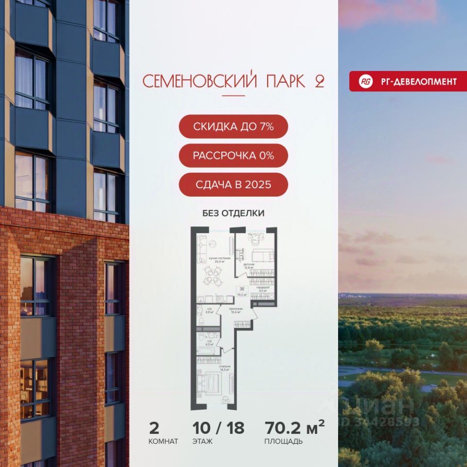 Продается 2-к квартира 70,2 кв.м. в ЖК "Семеновский парк 2" на 10-м этаже 18 этажного дома.