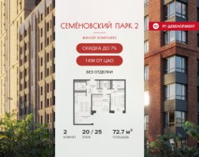 Продается 2-к квартира 72,7 кв.м. в ЖК "Семеновский парк 2" на 20-м этаже 25 этажного дома.