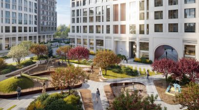 Проектом предусмотрено благоустройство набережной и создание 4-километровой парковой зоны и первого в столице водного парка. Комплекс расположен вдоль Москвы-реки и набережной Марка Шагала.