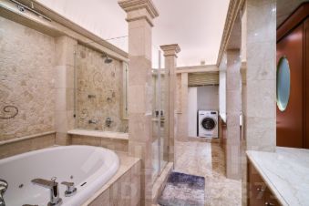 Ценителям эстетики и релаксации понравится роскошная ванная комната, выполненная в умиротворяющей палитре песочных оттенков, которая оснащена просторной душевой зоной. Дополнительный комфорт для всей семьи обеспечивает гостевой санузел, расположенный при входе.