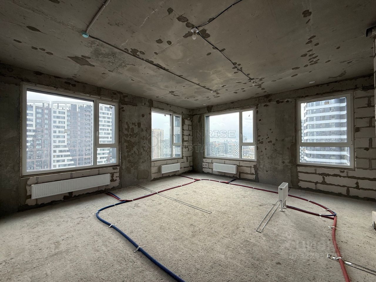 Квартира без отделки, выделены мокрые зоны, установлены двойные стеклопакеты, заведены инженерные коммуникации (электричество, водоснабжение, отопление установлены радиаторы (разводка по полу).