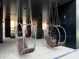 - АРТ ПРОСТРАНСТВО для жителей дома - качели, шезлонги, коворкинг на свежем воздухе, розетки 220В для ваших гаджетов
