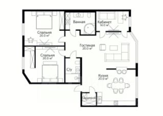 - 2 ванные комнаты (одна с ванной, вторая с душевой кабиной);