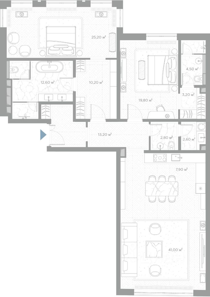 Nicole Collection отличается коллекцией безупречно сбалансированных планировочных решений. Все квартиры правильной геометрической формы, с высокими потолками и самыми просторными метражами в проекте Nicole.