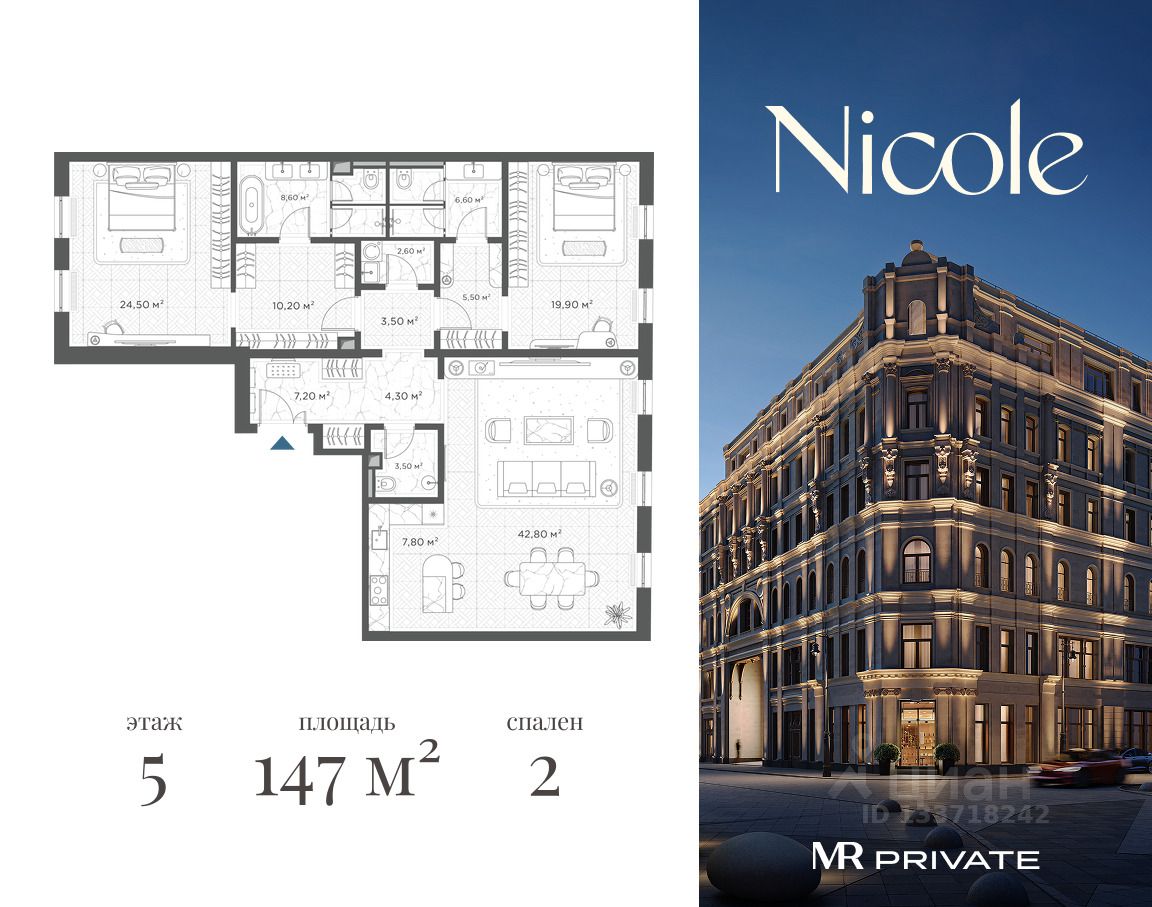 Nicole Collection В шаговой доступности от Красной площади, в тишине переплетений улиц, расположена самая камерная резиденция делюкс-квартала Nicole — Nicole Collection. Её классическая архитектура в лучших традициях французской элегантности бережно вписана в исторический контекст Старопанского и Богоявленского переулков. Проект создан авторитетным бюро PARIS Classic Architecture — признанными мастерами роскошных особняков. В основу архитектуры Nicole Collection лег вневременной шик, традиционные композиционные приемы и сбалансированные пропорции характерные для архитектуры XIX века. Такой подход позволил создать резиденцию, где историческая достоверность встречается с современным уровнем комфорта, а каноны классической архитектуры обретают новое звучание в самом сердце Москвы. Приватный внутренний двор формирует особую атмосферу, в которой тщательно продуманные детали создают гармоничное пространство, доступное лишь избранным ценителям искусства жизни. Nicole Collection отличается коллекцией безупречно сбалансированных планировочных решений. Все квартиры правильной геометрической формы, с высокими потолками и самыми просторными метражами в проекте Nicole. Интерьеры общественных пространств Эстетика роскоши в атмосфере уединения. В основе интерьеров общественных зон лежит идея объединения. Каждый элемент интерьера тщательно подобран, как уникальное произведение искусства. Продуманная организация пространства позволяет создать внутреннюю экосистему, в которой все подчинено балансу. Функциональные планировки, выразительные оттенки и утонченная отделка — определенный тон образа жизни резидентов задается уже в лобби. Интерьеры квартир Интерьеры квартир Nicole Collection от COHO Interior Design — французский вневременной шик. Изысканная современная отделка, классические формы и пропорции создают утонченный живой эклектичный дизайн. В отделке применяются только натуральные материалы: ценные породы дерева, природный камень — мрамор и травертин, а также латунные элементы декора. Бюро Coho Interior Design базируется в историческом парижском квартале Бастилии, и все его проекты соответствуют утонченной французской эстетике. В своей работе дизайнеры демонстрируют глубокое знание культурного контекста и интерес к использованию инновационных материалов и технологий. Отделка В проекте предусмотрена предчистовая отделка White Box Deluxe. Исключительные подготовительные работы для создания уникального интерьера. Премиальная Smart-инженерия и оборудование. Предчистовая отделка каждой квартиры дает возможность адаптировать пространство под свои потребности и индивидуальный дизайн-проект. Каркасные перегородки позволяют произвести максимально бесшумные и чистые работы при их переносе или адаптации розеточной сети. Дополнительно возможно выбрать вариант из коллекции финишной отделки от мирового дизайн-бюро COHO Interior Design