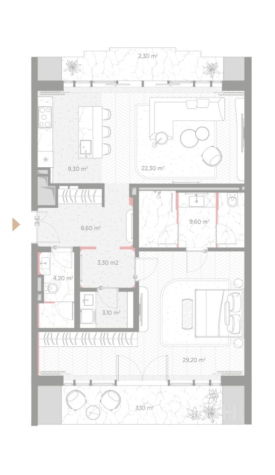 В проекте предусмотрена предчистовая отделка White Box Deluxe. Исключительные подготовительные работы для создания уникального интерьера. Премиальная Smart-инженерия и оборудование. Предчистовая отделка каждой квартиры дает возможность адаптировать пространство под свои потребности и индивидуальный дизайн-проект. Каркасные перегородки позволяют произвести максимально бесшумные и чистые работы при их переносе розеточной сети. Дополнительно возможно выбрать вариант из коллекции финишной отделки от мирового дизайн-бюро НВА - аристократичную элегантность в вариантах Classic Light или Classic Dark.