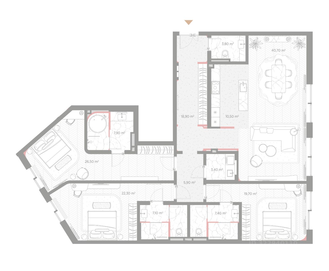 Интерьеры Nicole разработаны известной английской студией HBA, обладают яркой индивидуальностью, словно каждому отдельному пространству отведена своя собственная роль. При этом все решения органично вписаны в единую дизайн-концепцию за счет использования общих лейтмотивов. Объединяющим элементом служит матовый никель, благородный блеск которого формирует особую эстетику восприятия.