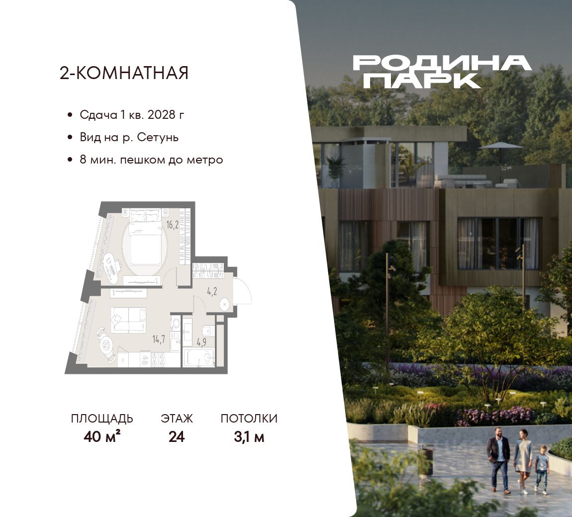 В жилом кластере Родина Парк рядом с природным заказником Долина реки Сетунь продаётся 2-комнатная квартира.