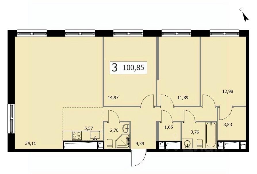 Продаётся 3-комнатная квартира в сданном доме (3-я Гражданская, 21 (Корпус 2)), срок сдачи: II-кв. 2024, общей площадью 100.85 кв.м., на 18 этаже. Парковый квартал возводится в районе Богородское, окруженном лесными массивами, вблизи комплекса расположены старейшие парки Москвы: