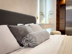 Вся мебель делалась по индивидуальному эскизу, на заказ! Дорогие отделочные материалы, столешница и подоконники из камня, керамогранит, премиальный кварцвинил на полу, которому не страшен даже потоп. Пол с подогревом в ванной. Разнообразные сценарии освещения.