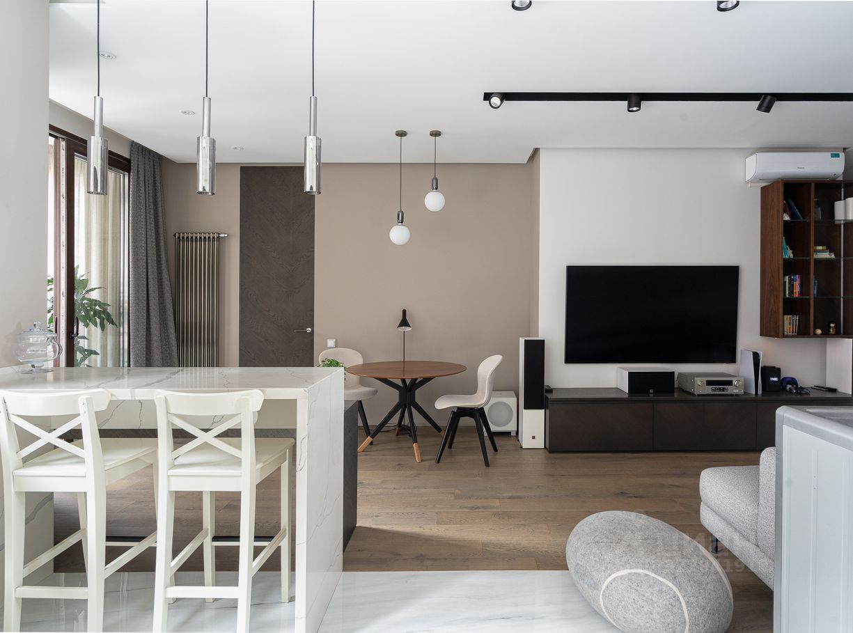 * Идеальная планировка: мастер-спальня с большой стильной ванной комнатой, просторная кухня-гостиная с выходом на уютный балкон, который можно использовать как рабочее место или зону отдыха, детская, второй санузел, много встроенных и продуманных систем хранения.
