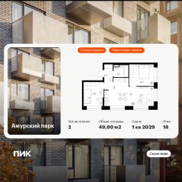 Продаётся 2-комн. квартира площадью 49,6 кв.м на 18 этаже 27 этажного дома (Корпус 4.5, Секция 6) проекта ПИК Амурский парк. Светлый просторный подъезд на уровне земли, функциональная планировка, большие окна, c отделкой.