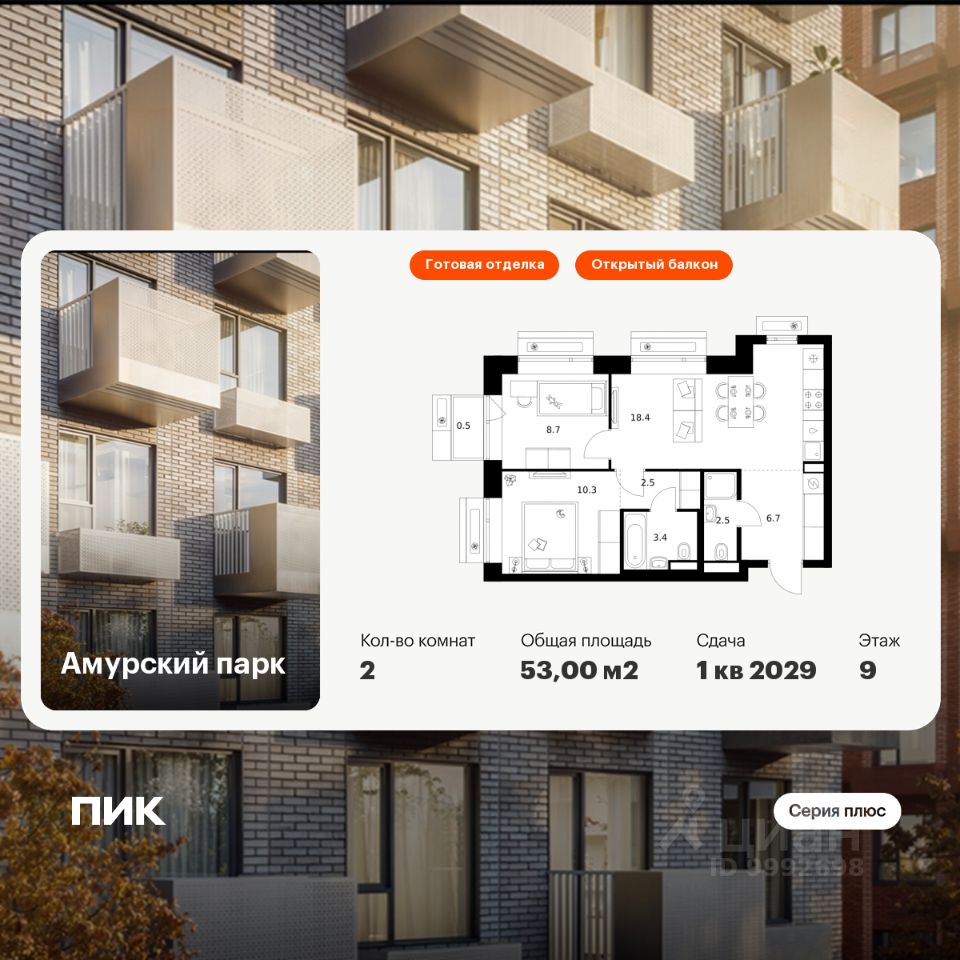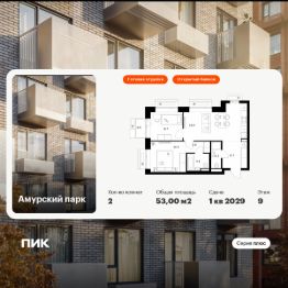 Продаётся 2-комн. квартира площадью 53 кв.м на 9 этаже 12 этажного дома (Корпус 4.2, Секция 2) проекта ПИК Амурский парк. Светлый просторный подъезд на уровне земли, функциональная планировка, большие окна, c отделкой.