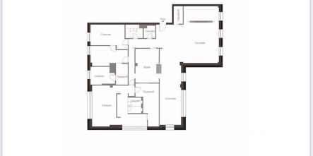 Удобная планировка позволяет одновременно устроить весёлую вечеринку в гостиной и спокойно отдохнуть в любой из спален.
