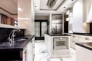 Изолированная кухня с современной техникой.