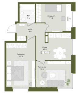 Продается просторная 3-комнатная квартира на 2 этаже с готовой отделкой от застройщика. В квартире 3 спальни ,1 санузел ,вид на дом/парковку/. Угловая планировка. Общая площадь 62,7 кв.м.