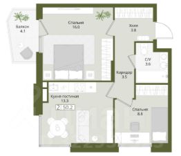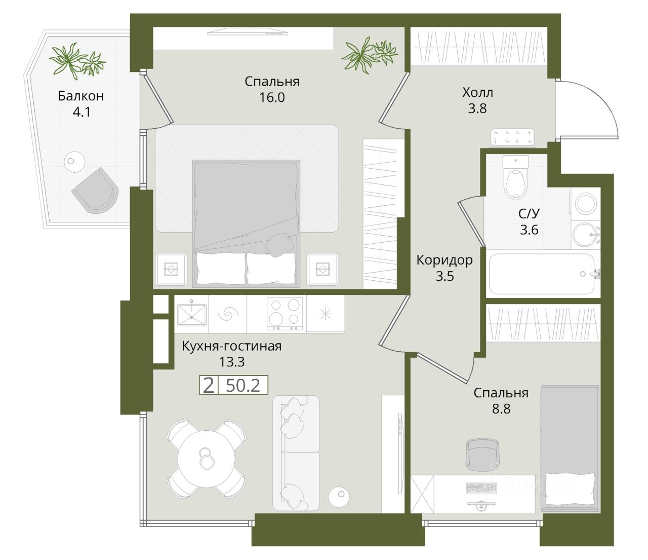 Продается 2-комнатная квартира на 3 этаже с готовой отделкой от застройщика. В квартире 2 спальни, 1 санузел, балкон, вид на дом/парковку. Угловая планировка. Общая площадь 50,2 кв.м.