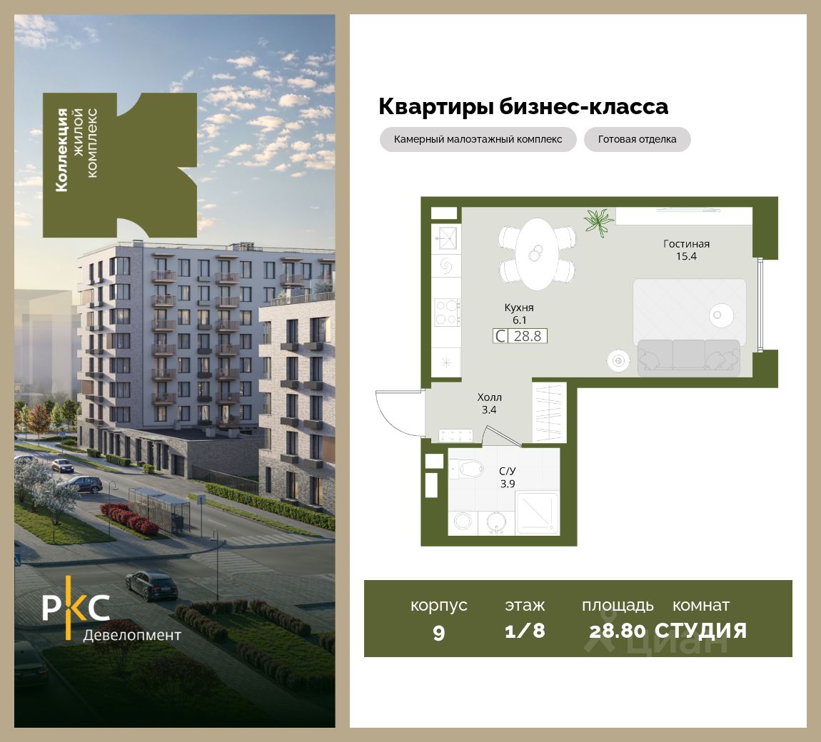 На выбор представлены 3 вида дизайнерской отделки с использованием качественных материалов. Высота потолков 3 м. Кухня 6.1 м2.