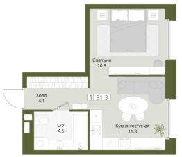 Агентам не звонить. Продается 1-комнатная квартира на 4 этаже с готовой отделкой от застройщика. В квартире 1 спальня и кухня-гостиная, 1 санузел. Вид из окна на лес. Линейная планировка. Общая площадь 31,3 кв.м. На выбор представлены 3 вида дизайнерской отделки с использованием качественных материалов. Высота потолков 3 м. Площадь кухни 6.6 м2.