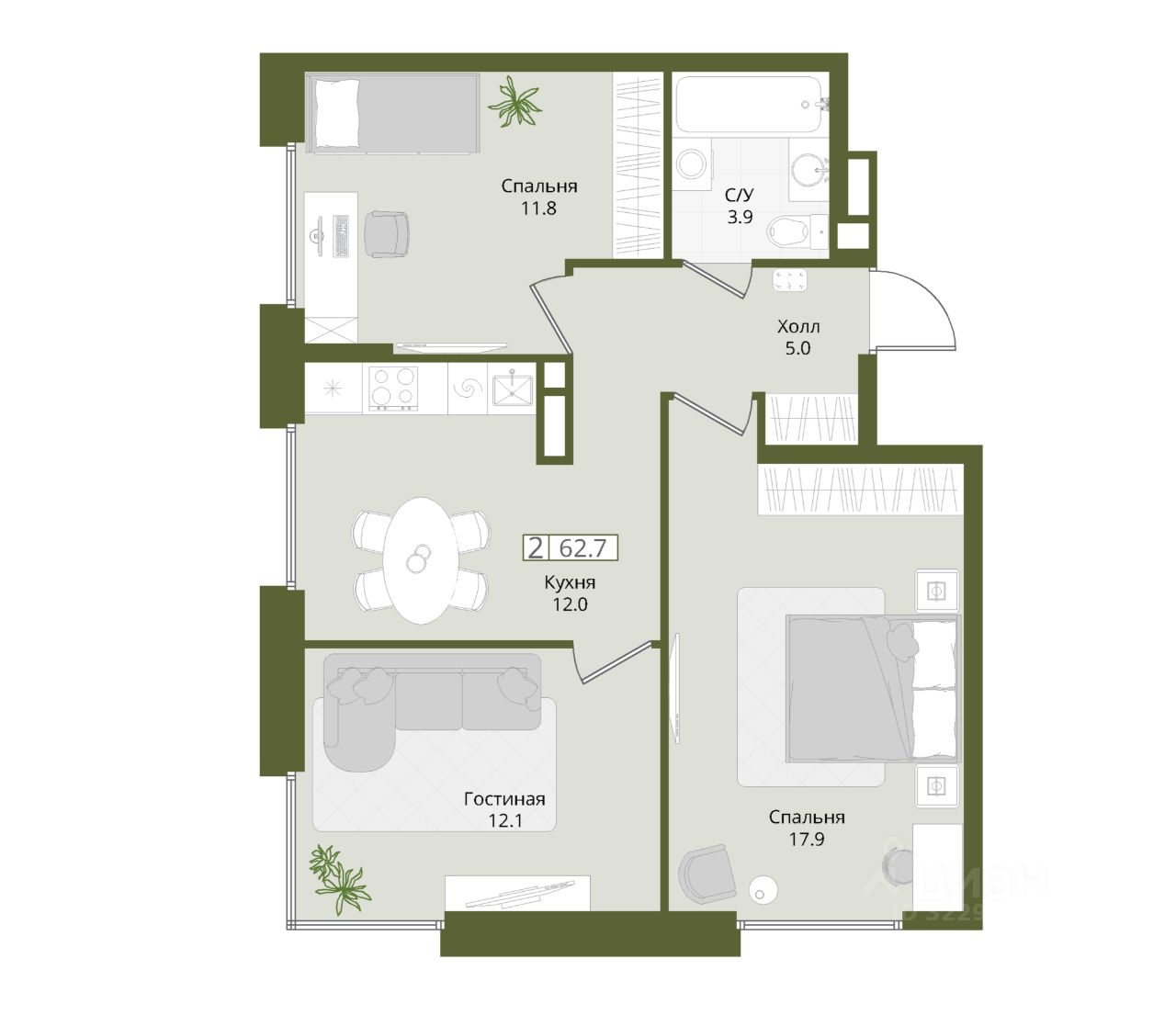 Продается 3-комнатная квартира на 3 этаже с готовой отделкой от застройщика. В квартире кухня-гостиная , 1 санузел, вид на дорогу и парковку. Угловая планировка. Общая площадь 62,7 кв.м.