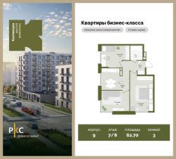Продается просторная 3-комнатная квартира на 7 этаже с готовой отделкой от застройщика. В квартире 3 спальни ,1 санузел ,вид на дорогу и парковку.Угловая планировка. Общая площадь 62,7 кв.м.
