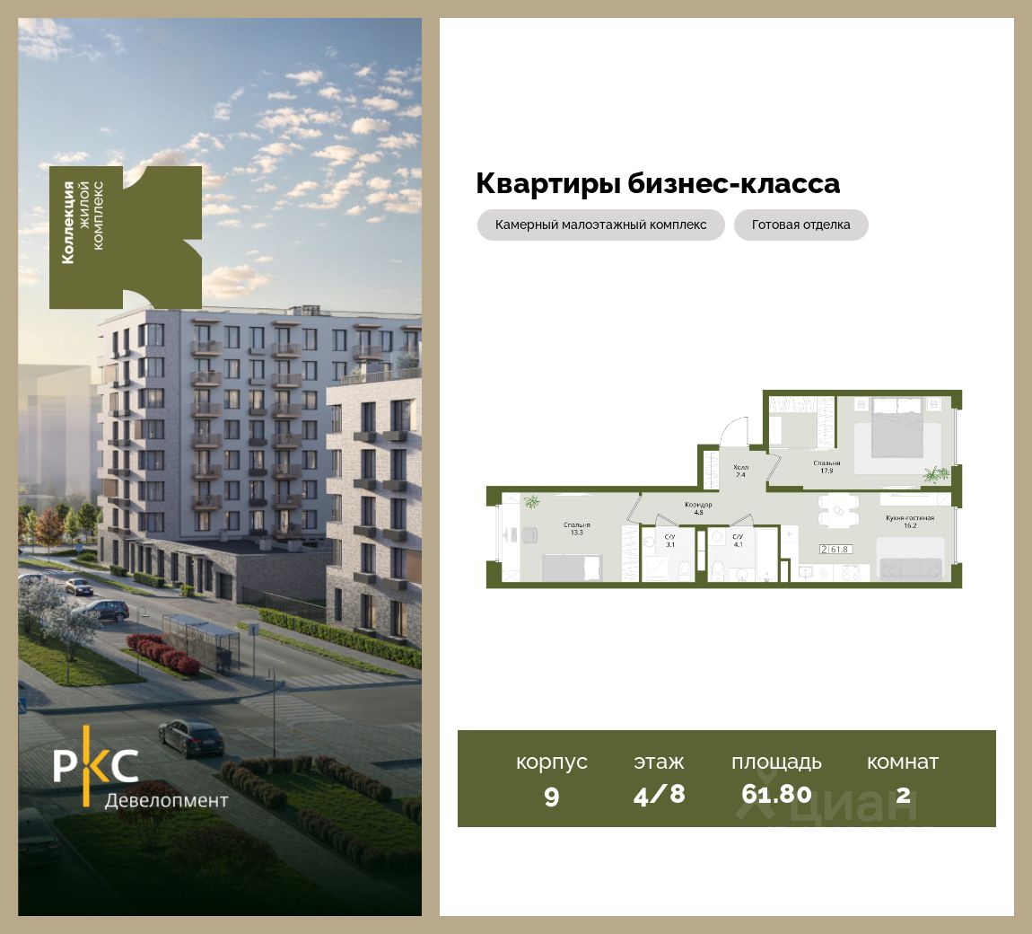 Агентам не звонить. Продается 2-комнатная квартира на 4 этаже с готовой отделкой от застройщика. В квартире 2 спальни, 2 санузла, вид на дорогу/двор. Общая площадь 61,8 кв.м. На выбор представлены 3 вида дизайнерской отделки с использованием качественных материалов. Высота потолков 3 м. Площадь кухни 16.2 м2.