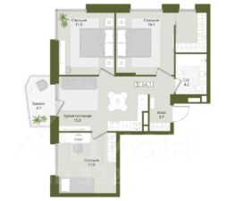 На выбор представлены 3 вида дизайнерской отделки с использованием качественных материалов. Высота потолков 3 м. Площадь кухни 15.9 м2.