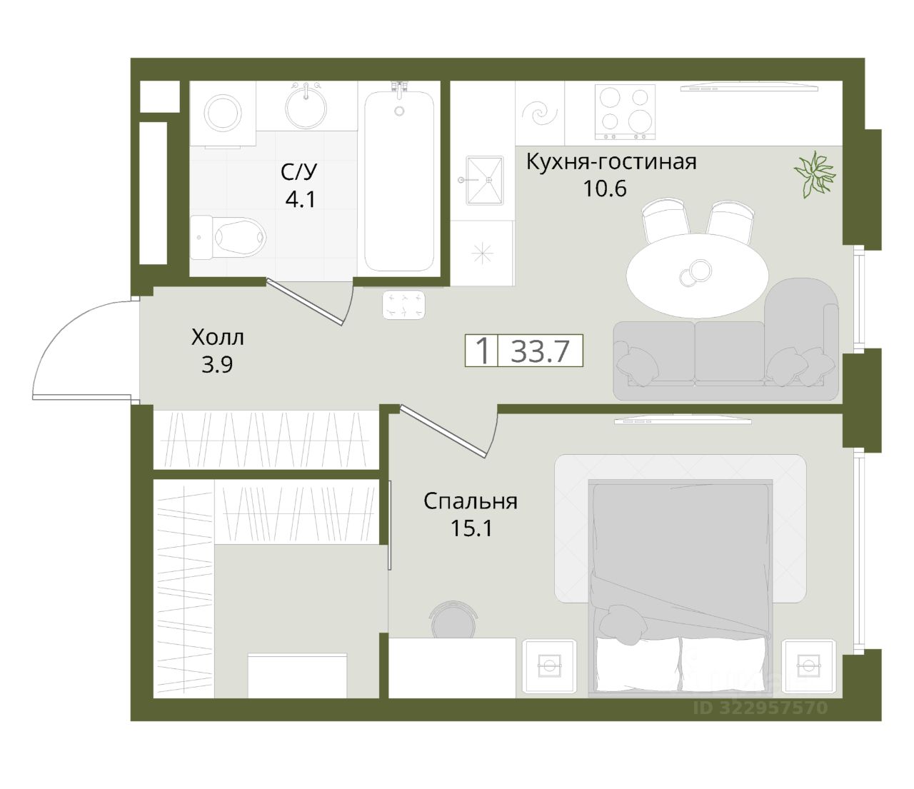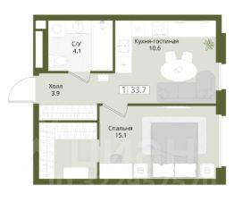 Продается 1-комнатная квартира на 8 этаже с готовой отделкой от застройщика. В квартире 1 спальня и кухня-гостиная, гардеробная в спальне, 1 санузел, вид из окна во двор. Линейная планировка. Общая площадь 33,7 кв.м.