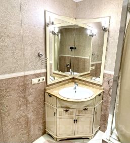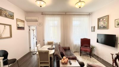 В квартире сделан дизайнерский ремонт. Все комнаты продуманы до мелочей, чтобы наслаждаться комфортом и уютом. Просторная кухня-гостиная укомплектована всей необходимой техникой, окна во двор обеспечивают покой, света достаточно в каждой комнате. Много мест для хранения, имеется антресоль, постирочная. В квартире есть один совмещенный и один отдельный санузел, что очень удобно для большой семьи.
