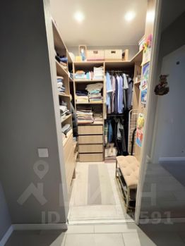 - Гардеробная, куда помещаются все вещи и бытовые предметы — квартира остаётся просторной и без нагромождения шкафов