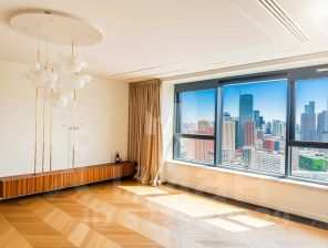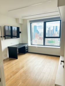 Просторные апартаменты с одной спальней в комплексе Match Point в центре Кутузовского проспекта напротив Парка Победы. Апартаменты общей площадью 85 м² расположены на шестом этаже. Выполнен ремонт с использованием натурального мрамора, на полу выложена паркет из дуба.