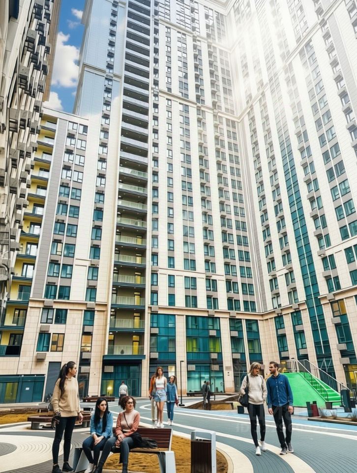 Главное о доме. Match Point — квартал апартаментов у Кутузовского проспекта с панорамными окнами и видами на Триумфальную арку, Поклонную гору и башни делового центра. Во входных группах — натуральный камень, тёплый свет, стойка ресепшн и мягкие зоны ожидания. На стилобате устроили двор без машин с озеленением, детскими и спортивными площадками. В составе проекта работает волейбольная арена "Динамо" с трибунами, поэтому спортивные события — часть повседневной сцены. На первых этажах разместили кафе и повседневные сервисы. Под землёй — трёхуровневый подземный паркинг с лифтовым доступом к корпусам.
