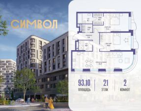 Продается 2-комнатная квартира от застройщика: общая площадь 93.10 м², жилая 35.40 м², кухня 33.70 м², 21-й этаж, жилой квартал "Вдохновение", корпус 35 (секция 1). Срок сдачи: 4 квартал 2027 года.