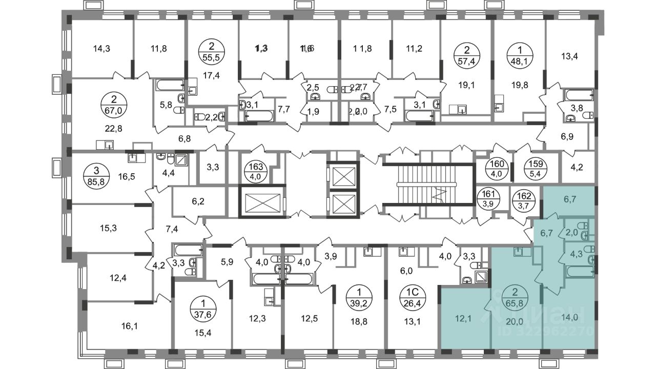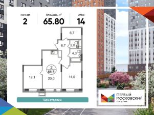 Общая площадь квартиры - 65,8 кв. м, этаж 14 из 19.