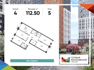 Продается четырехкомнатная квартира без отделки в 7 фазе города-парка "Первый Московский".