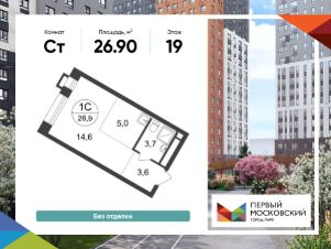Общая площадь квартиры - 26,9 кв. м, этаж - 19 из 20.