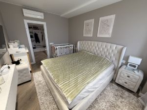 Стены / пол / потолок все выровненно, на стенах в комнатах краска в несколько слоев (можно мыть) и в гостиной фреска от известной фабрики. В туалете и ванной комнате керамогранит, пол с подогревом и огромная гидромассажная ванная. Установлена система от протечек. Проточный водонагреватель. В квартире продумано много сценариев освещения на все случаи жизни. Во всех комнатах и кухне кондиционеры Митсубиши работающие на обогрев и охлаждение. Кухня от фабрики кухонный двор по индивидуальному проекту с антресолью и встроенной техникой, все шкафы на доводчиках и механизмах blum. Вся мебель на заказ по дизайн эскизам и размерам. Остается все мебель и техника.
