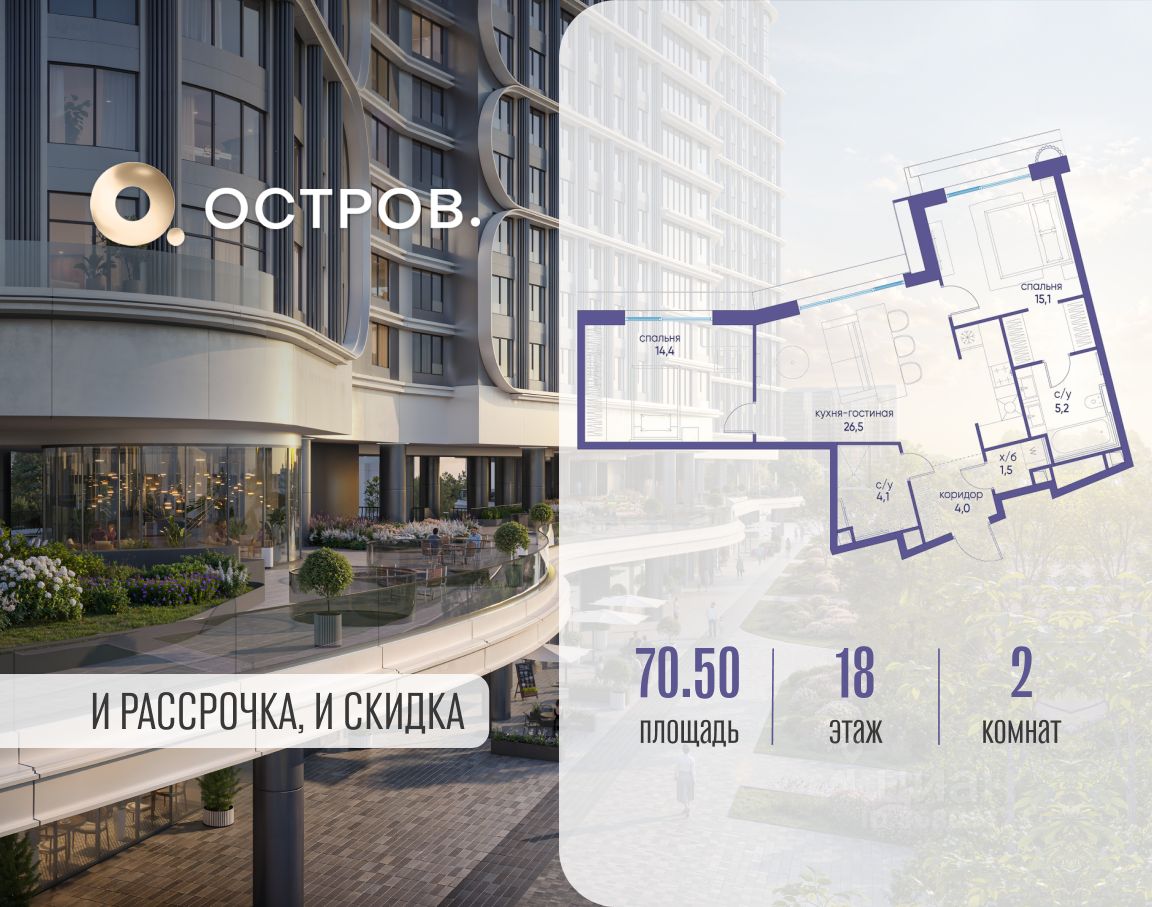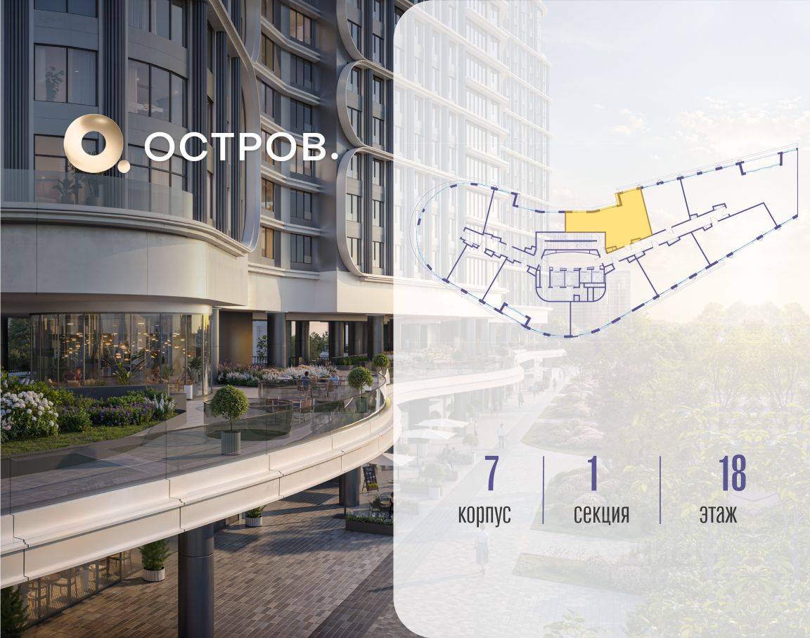 Купите квартиру в доме у прибрежного парка, в квартале ОСТРОВ.7. Это семь корпусов премиум- и бизнес-класса в одном из лучших мест ОСТРОВА - между бульваром и парком, поблизости от реки. Стильные корпуса имеют узнаваемый вид благодаря бионической пластике фасадов, приподнятых над землей. Для жителей предусмотрены детский клуб, фитнес-рум, коворкинг, переговорные, лаунжи. На крышах устроены видовые общественные пространства с зонами для отдыха и спорта. Двор расположен на двух уровнях: нижний ландшафтный парк и верхняя городская терраса.