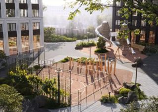 Во дворе комплекса "НАЗАРЕ'" будут места как для спокойного отдыха и работы, так и для игр и спорта. Здесь организованы игровые площадки для детей всех возврастов, места для стритбола и тенниса, а также зона с природным ландшафтом и коворкинг с экологичной деревянной мебелью.