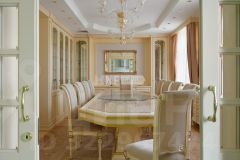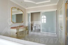1 уровень: гостиная, столовая, кухня с отдельным входом и отделена от столовой раздвижными дверями, кабинет, гостевой санузел, гардеробная.