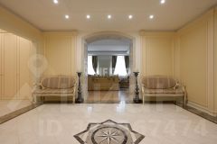 Выполнена отделка в классическом стиле, квартира меблирована и оснащена качественной бытовой техникой.