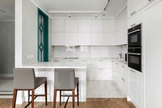 Кухня с гарнитуром и техникой NEFF (варочная поверхность, духовой шкаф, пароварка, холодильник).