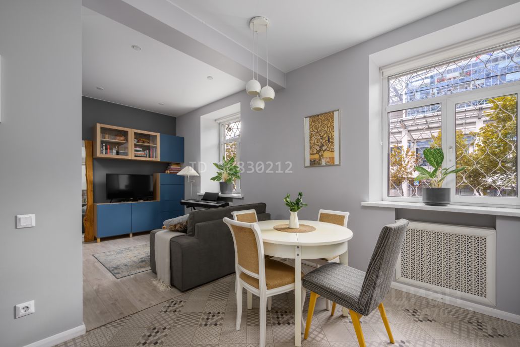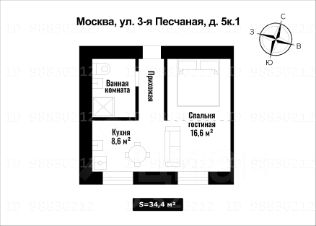 Квартира площадью 34,4 м² с евро - ремонтом, в сталинском кирпичном 7-ми этажном доме, с высокими потолками 3 метра - в пешей доступности от 3-х станций метро Сокол, Полежаевская, ЦСКА и 2-х станций МЦК Зорге и Панфиловская - в престижном районе Сокол Северного административного округа. Высокий 1-й этаж, в квартире выполнен качественный стильный ремонт. Функциональная зонированная планировка, которая позволяет максимально эффективно использовать пространство: спальня-гостиная 16,6 м² с большим встроенным шкафом для хранений вещей, кухня 8,6 м² и ванная комната с тёплым полом и душевой кабиной. Парковка рядом с домом, шлагбаум. Чистый и ухоженный подъезд, большой озеленённый двор.