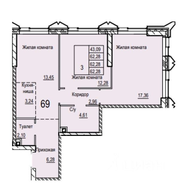 Квартира светлая, 5 окон. Окна выходят на две стороны дома, на противоположенную сторону от трамвайных путей. Три окна во двор на зону отдыха. Два окна на соседнее здание. Два санузла, свободная планировка.